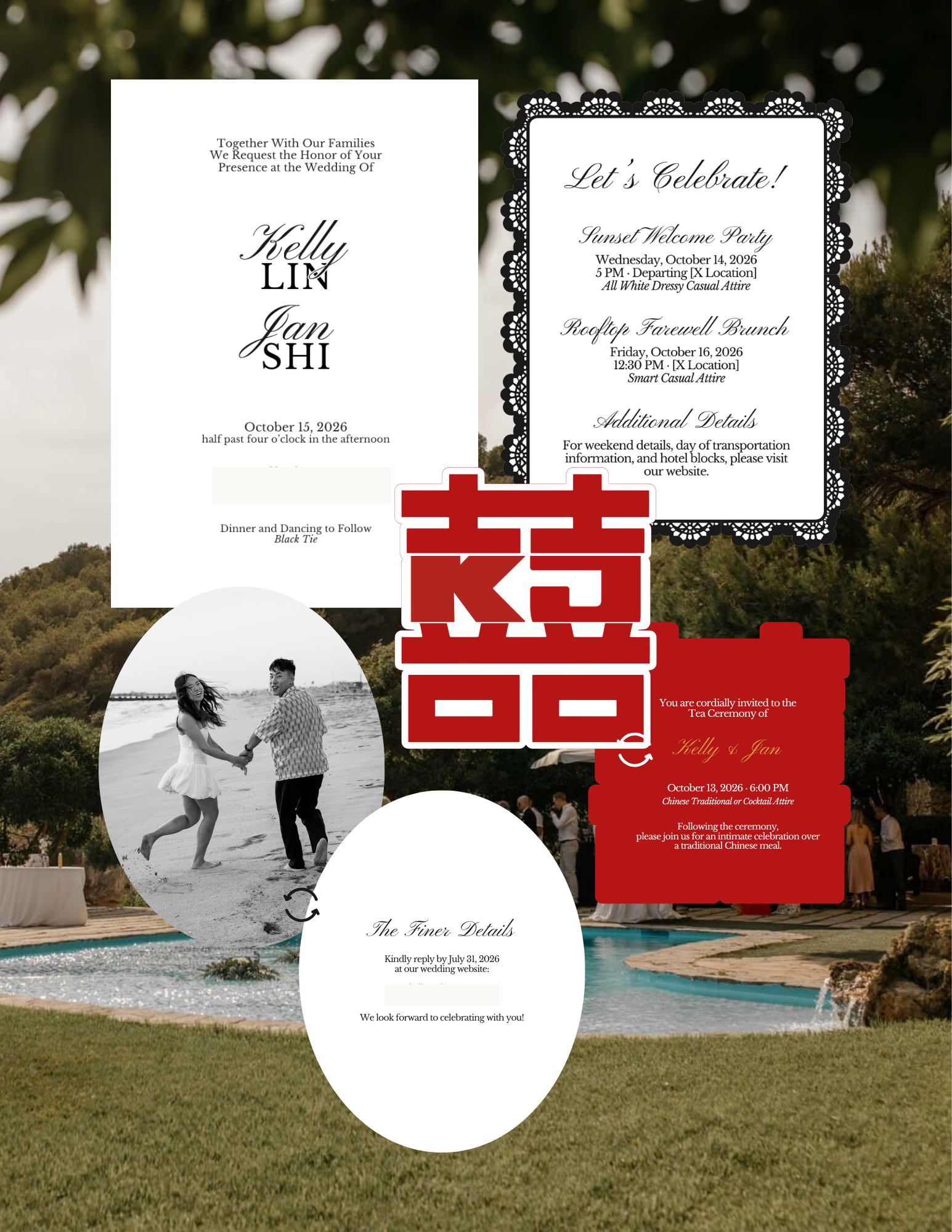 Concept and creation of stationery suite for the Lin-Shi wedding, with a focus on their destination, Spain.